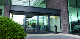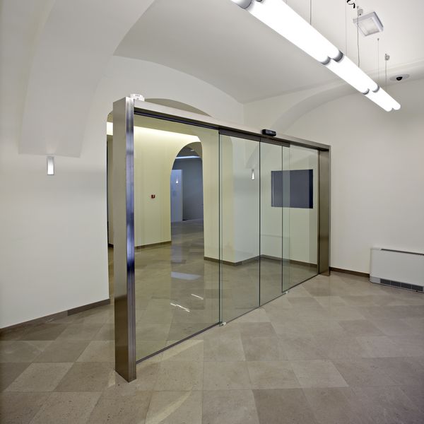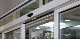 Pohony GEZE Slimdrive s výškou 7 cm skrývajú výkonný systém pre automatické posuvné dvere, ktorý sa dá elegantne
