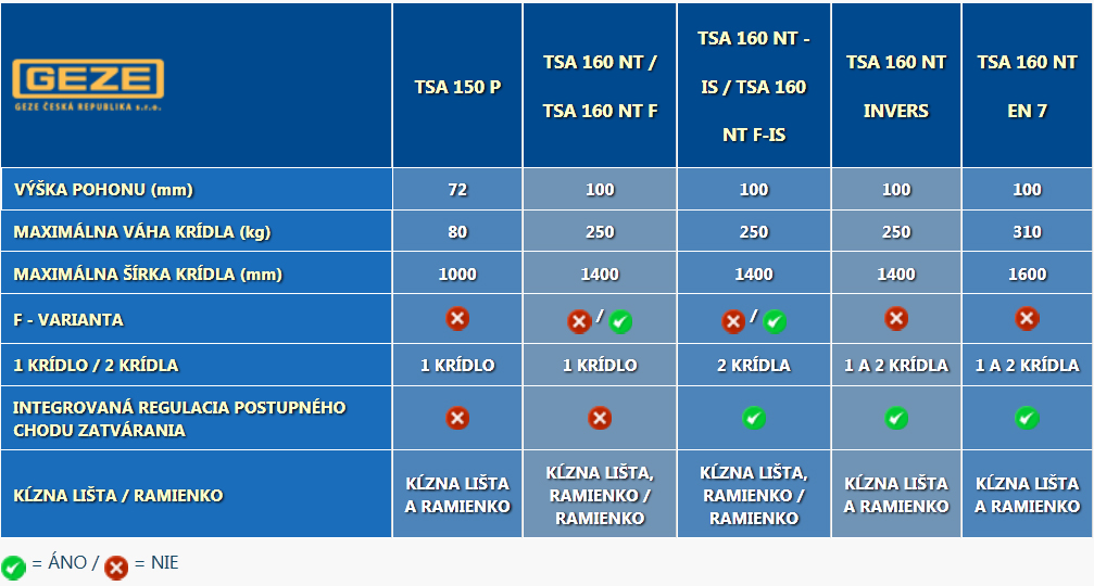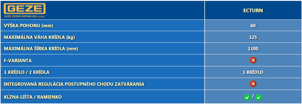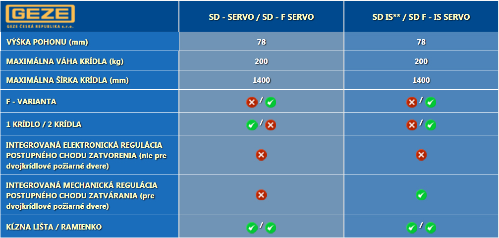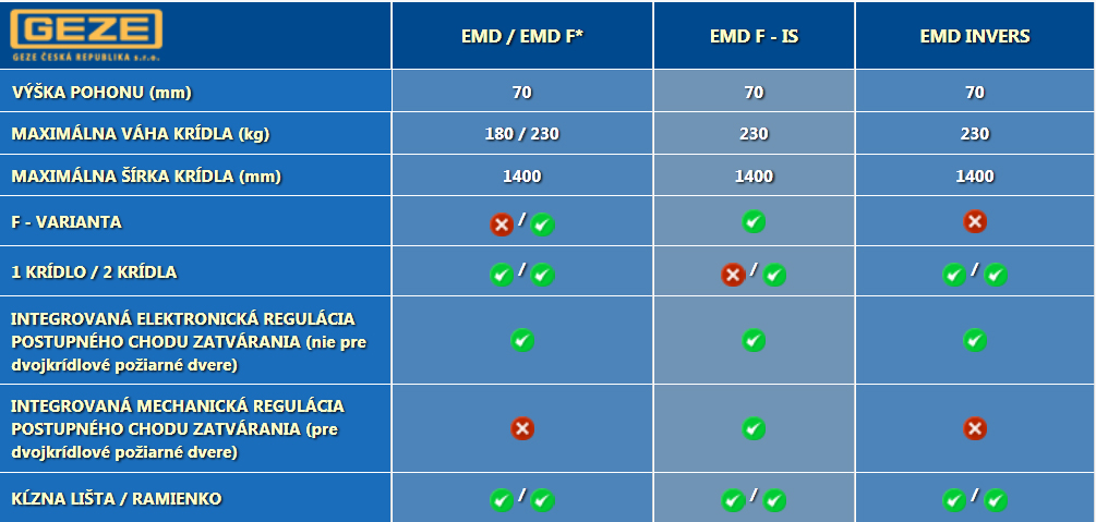 - Pre dverné krídlo hmotnosti do 180 kg (EMD), do 230 kg (EMD-F)